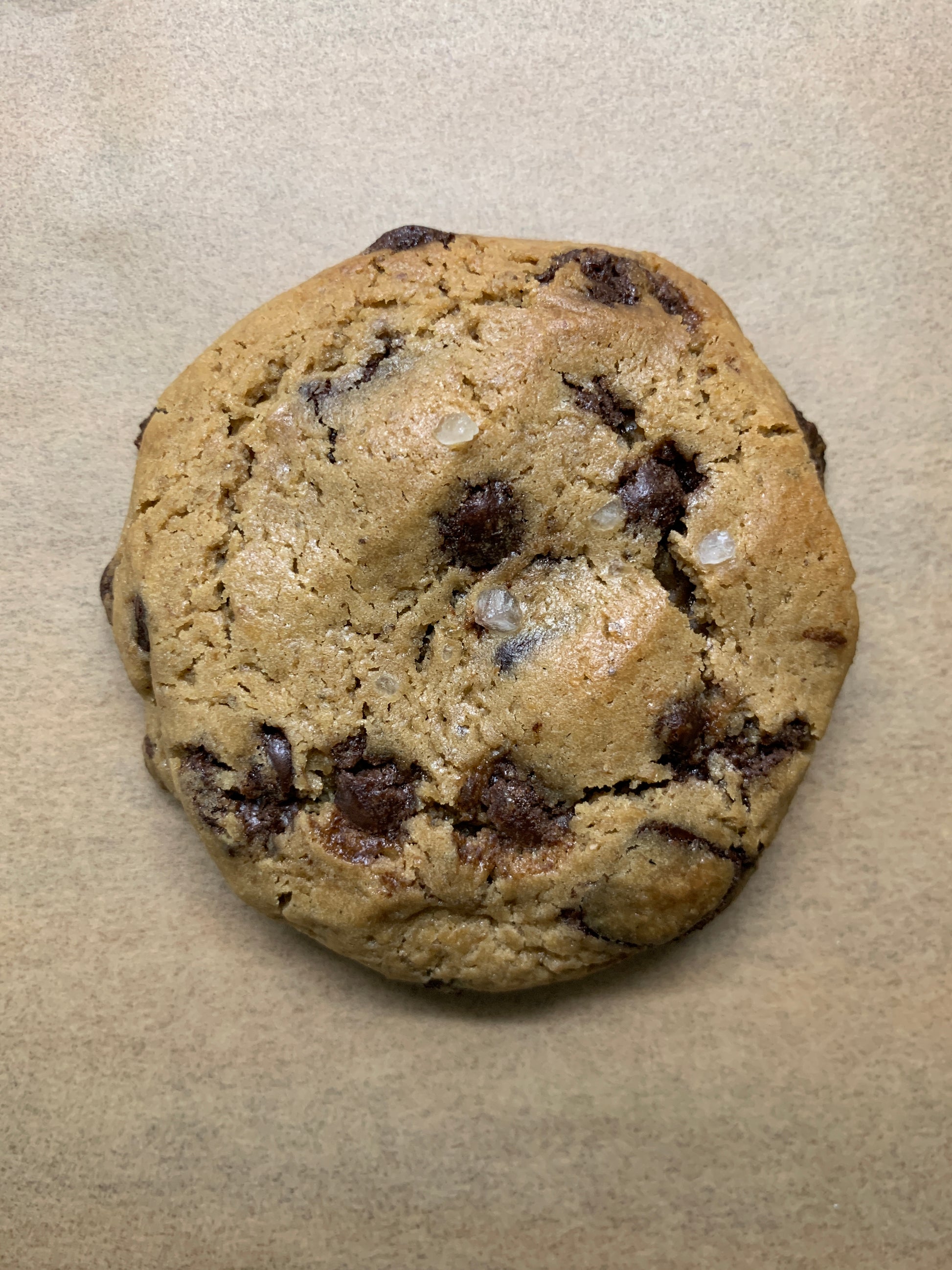 Each cookie is 70g of indulgence, baked medium rare: slightly crisp on the edges, gloriously soft at the center.